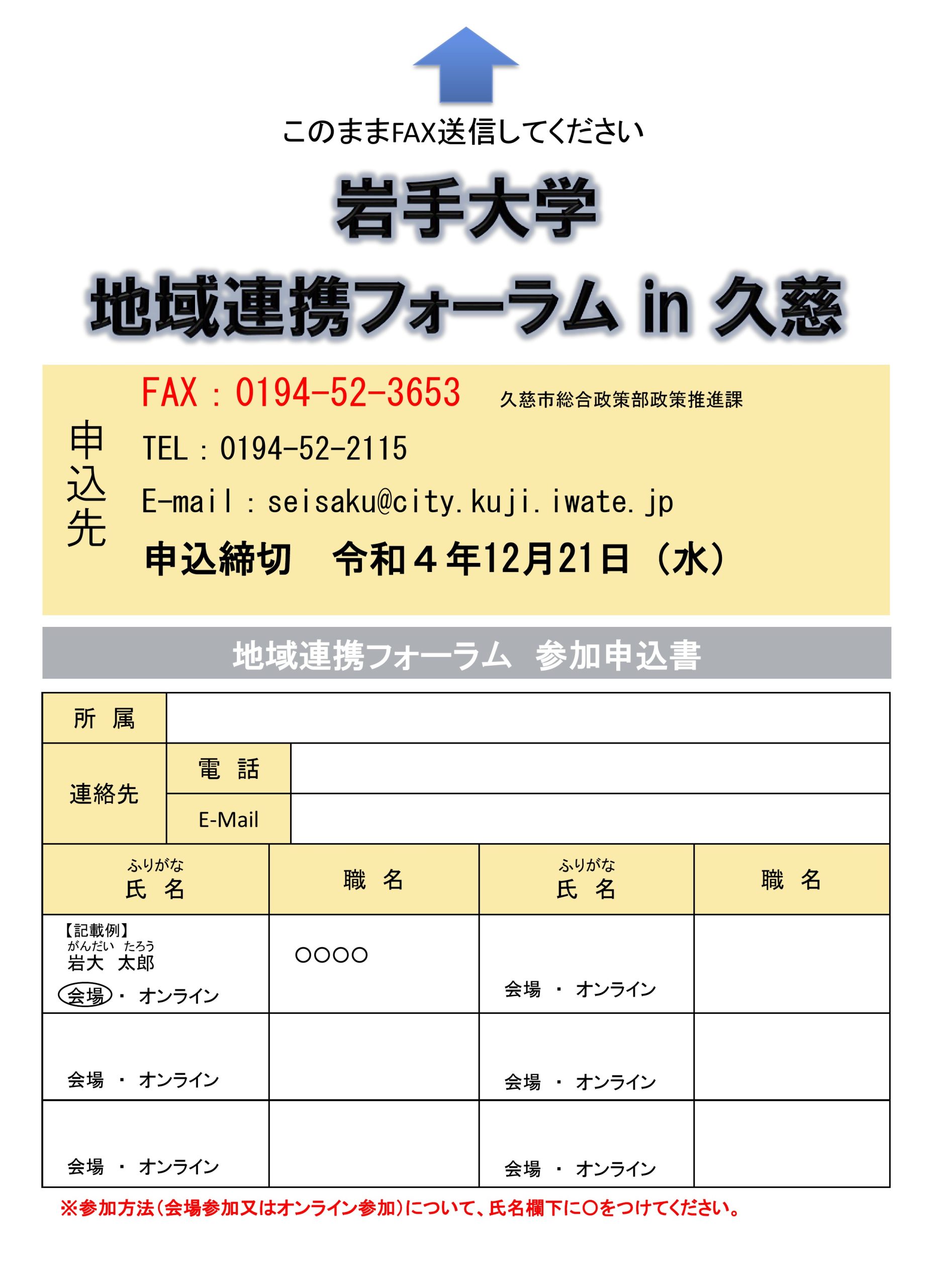 E-mail:seisaku@city.kuji.iwate.jp TEL:0194-52-2115 FAX:0194-52-3653